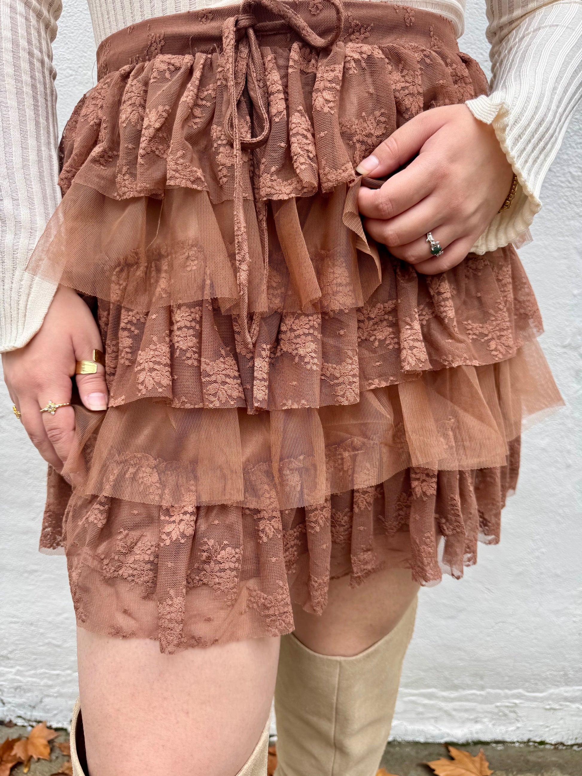 Ruffle Lace Tiered Mini Skirt