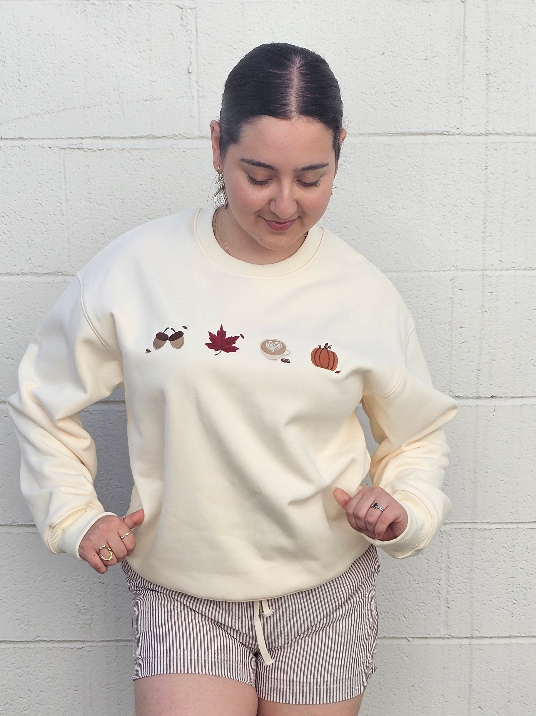 Crew Neck Long Sleeve Embroidered Fall Emblem Sweatshirt