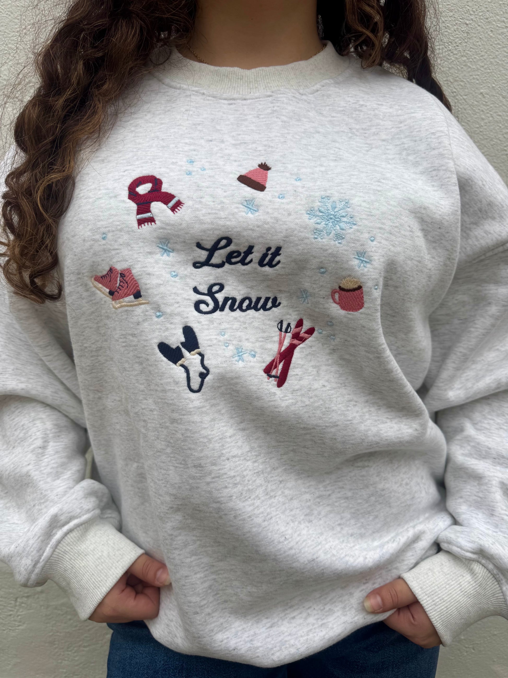 Round Neck Long Sleeve Graphic Embo Fleece Sweatshirt