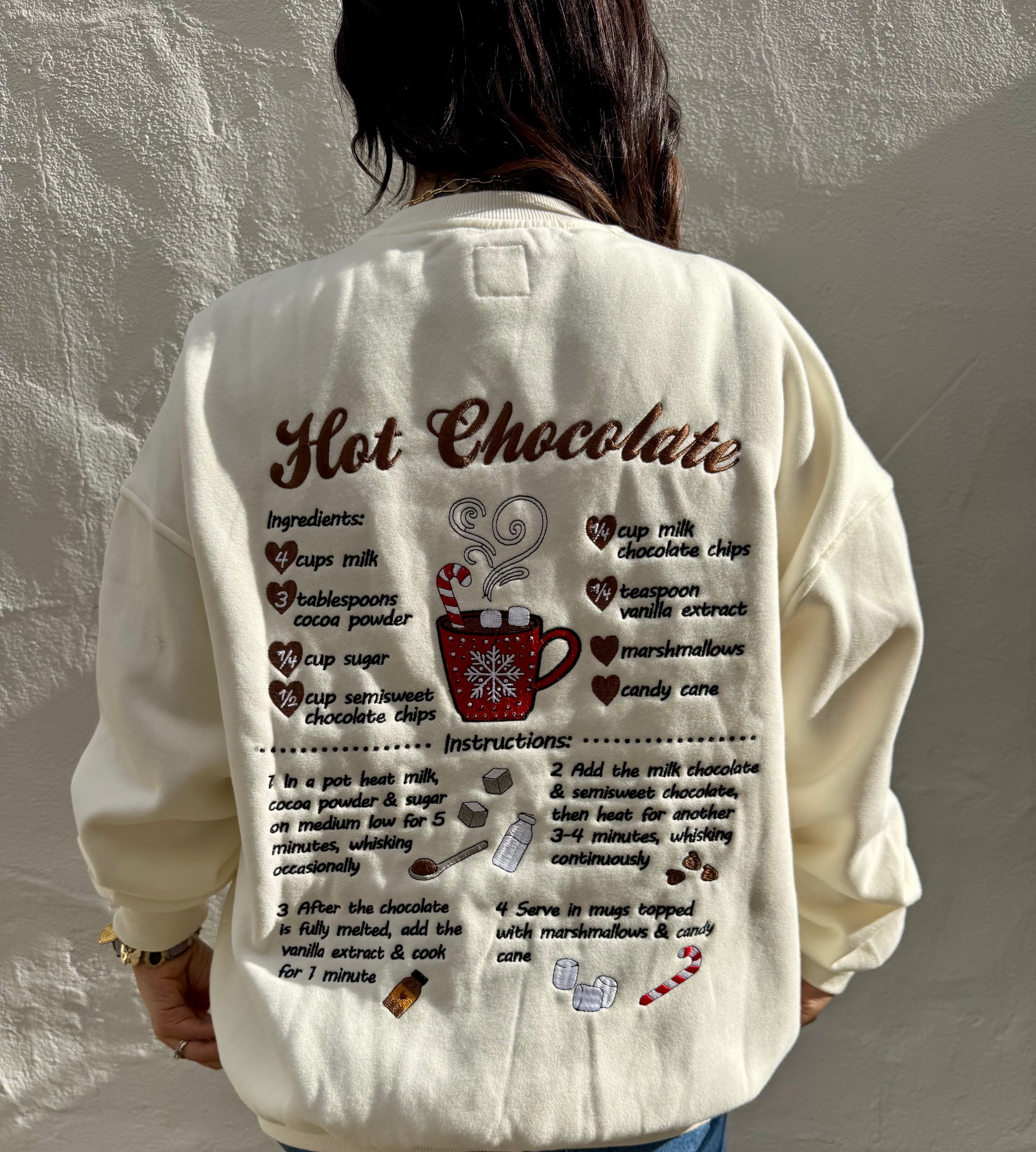 Hot Chocolate Recipe Christmas Embroider Oversized Sweatshirt