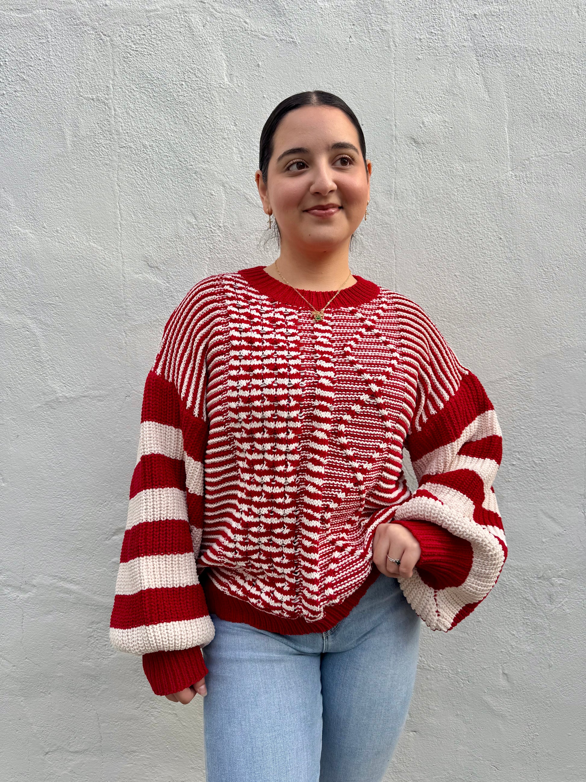 Multi Pattern Crochet Puff Sleeves Soft Sweater